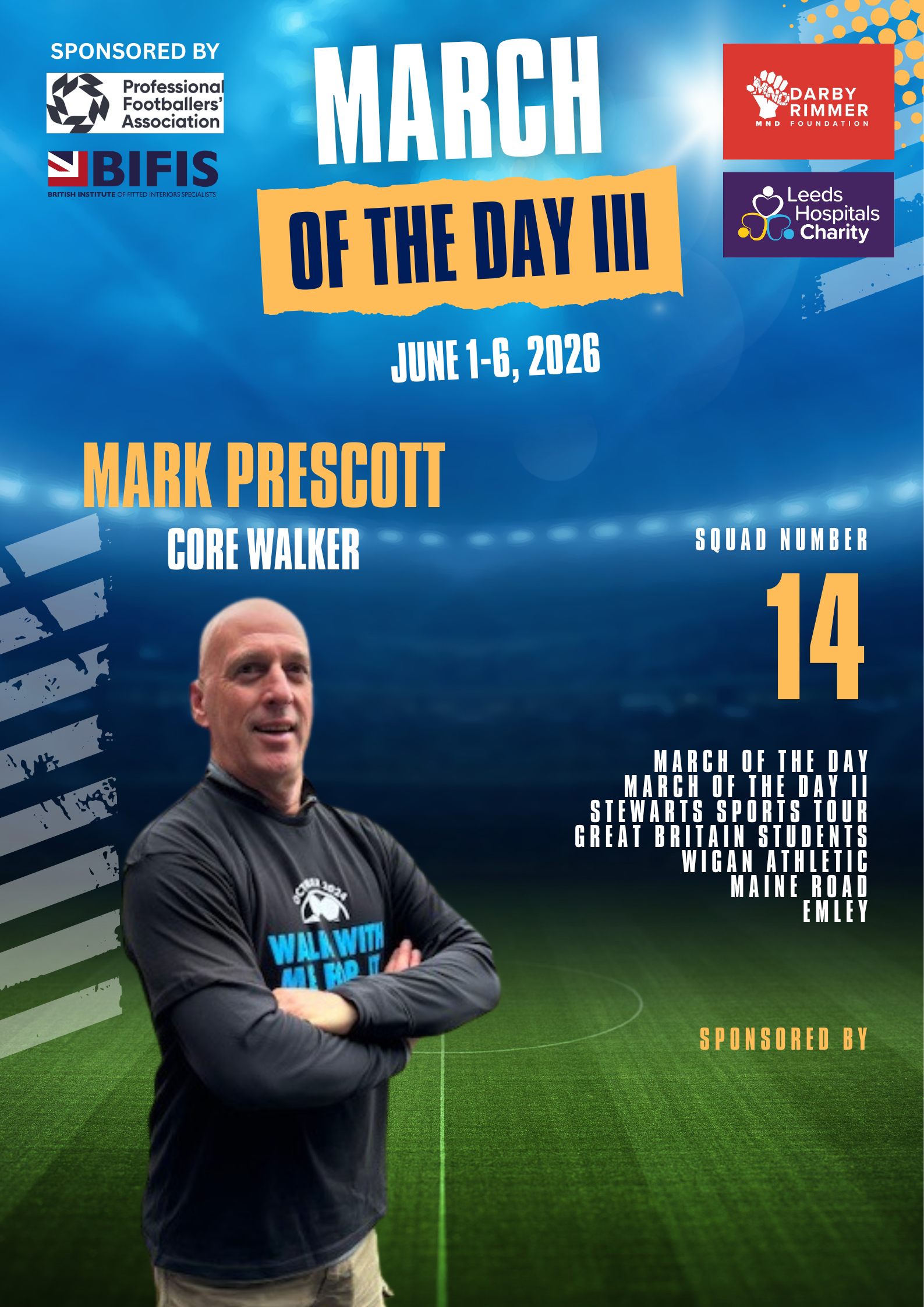 The March of the Day has two entirely separate teams of core walkers. The second team will cover Days 4-6 on June 4 through to Jun 6. They will complete the stages between Stockport County to the Rob Burrow Centre. This list includes all members of the team.