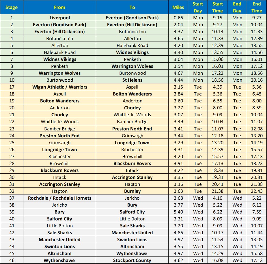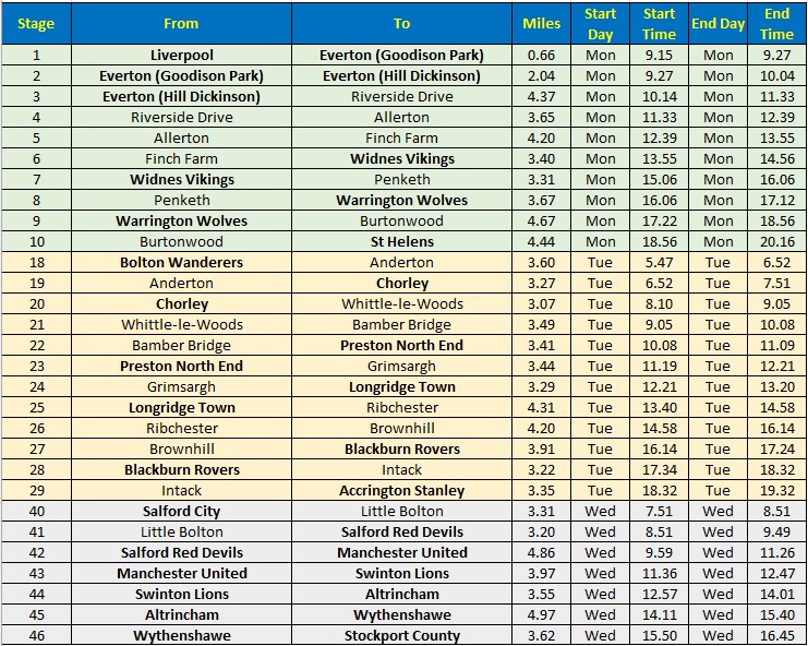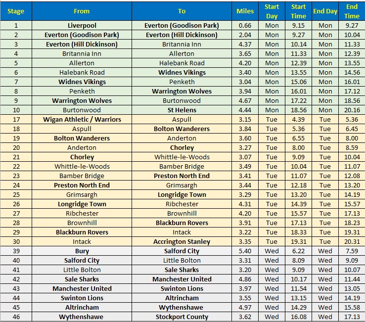 - Part 1 – Liverpool to Stockport County – Core Team One