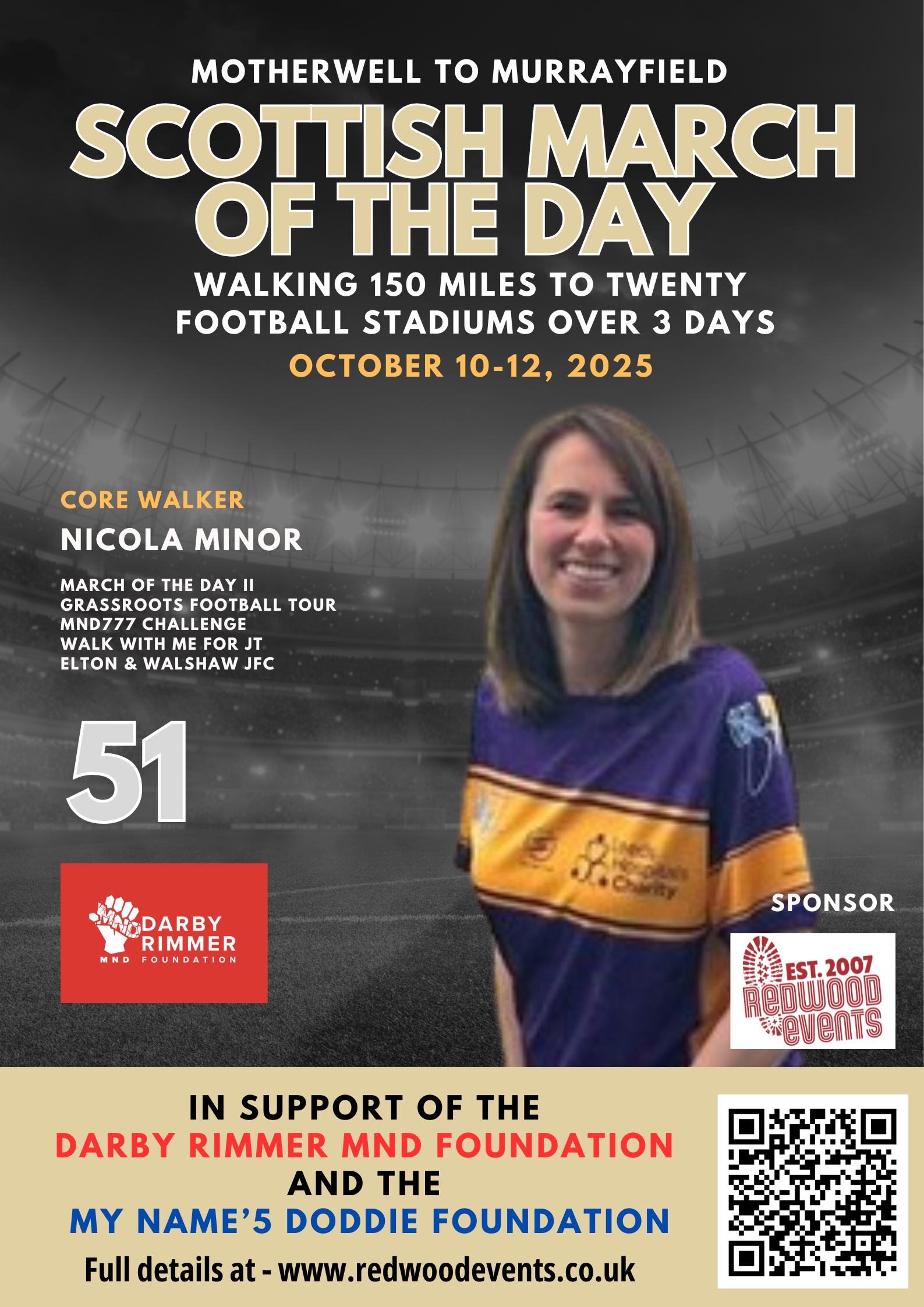 The Scottish March of the Day has two core teams representing each of of the collaborating Foundations. These are the members of the team recruited to support the Darby Rimmer MND Foundation across the full event. This list includes walkers and members of their support team.